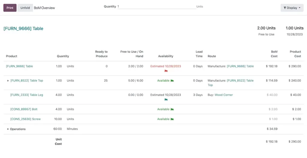 Suivez les composants, fabriquez par lots ou par numéros de série. Obtenez une traçabilité claire de toutes les opérations en un seul clic.