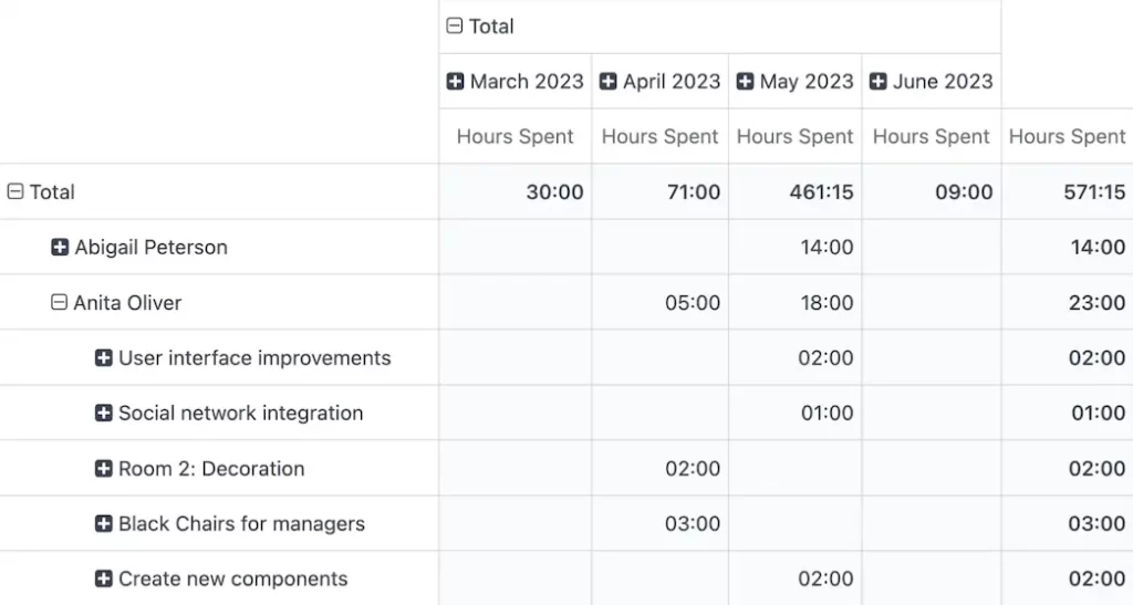 Gardez votre rentabilité. Obtenez un aperçu de votre temps facturable par membre de l’équipe, projet, tâche et type de facturation.