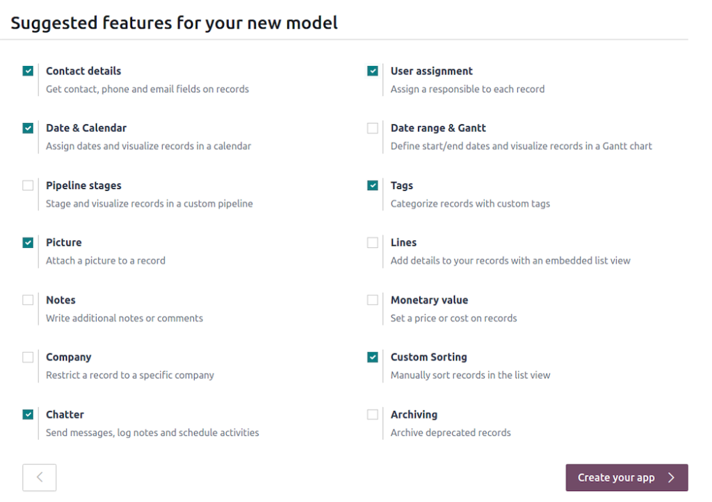 Créez votre application en un rien de temps. Choisissez simplement les fonctionnalités dont vous avez besoin et Odoo s’occupe du reste !